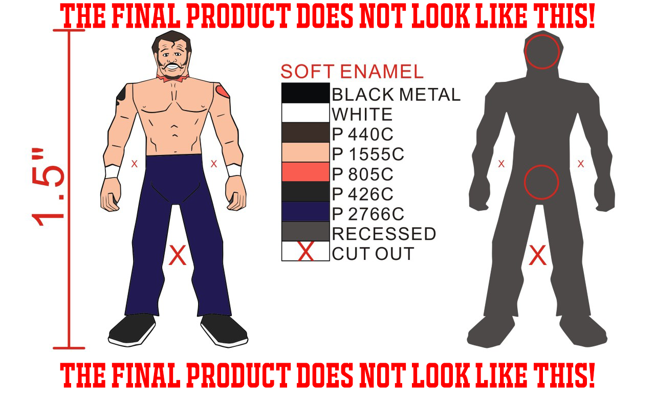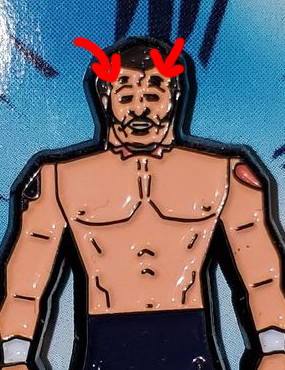 This pin was purchased at the same time as the AKI-Man pin. Sadly, this pin has a bit of an issue above the eyebrows. There are supposed to be wrinkles on his forehead, but the production lead to what's on it now.